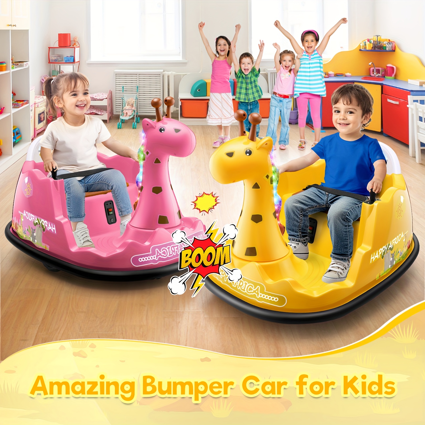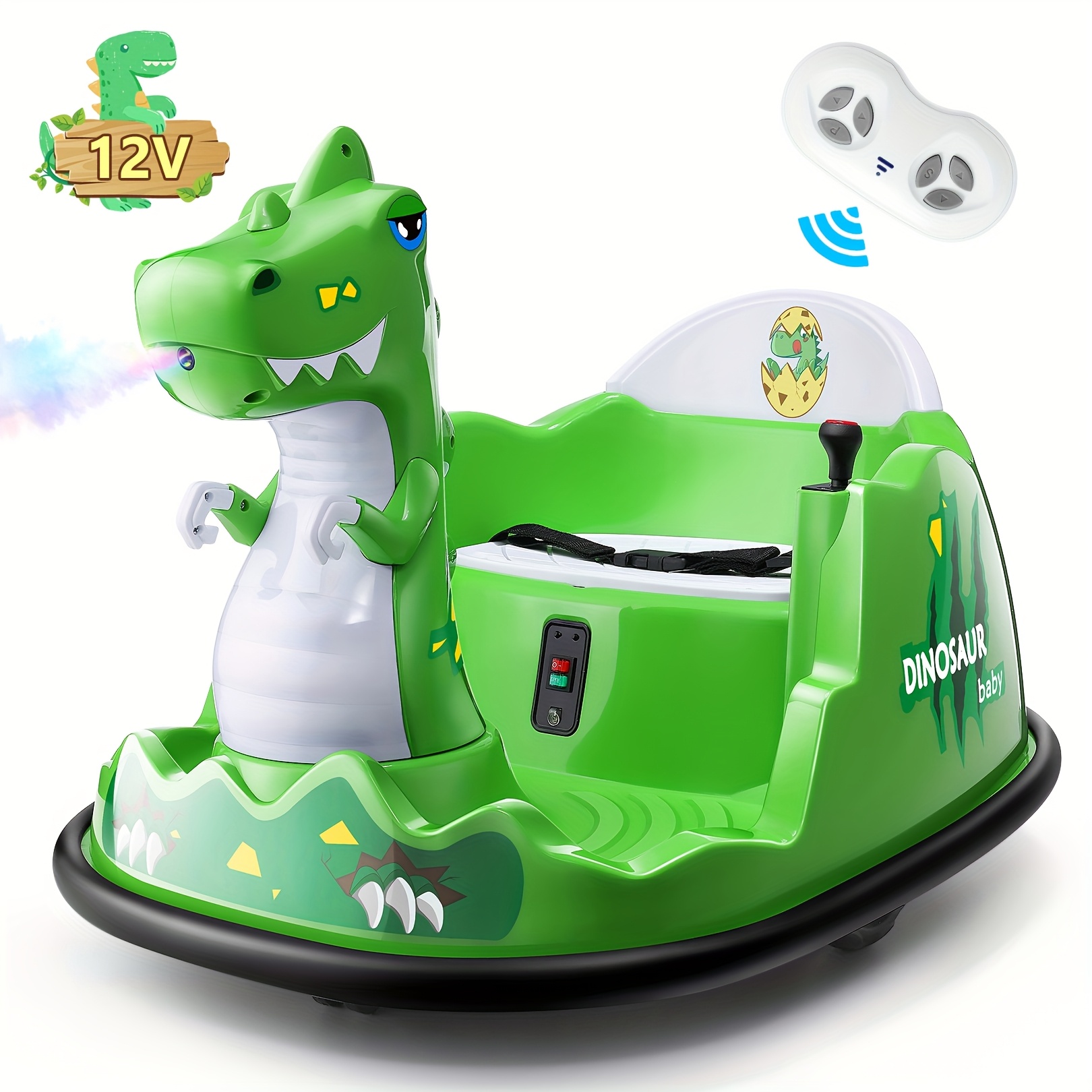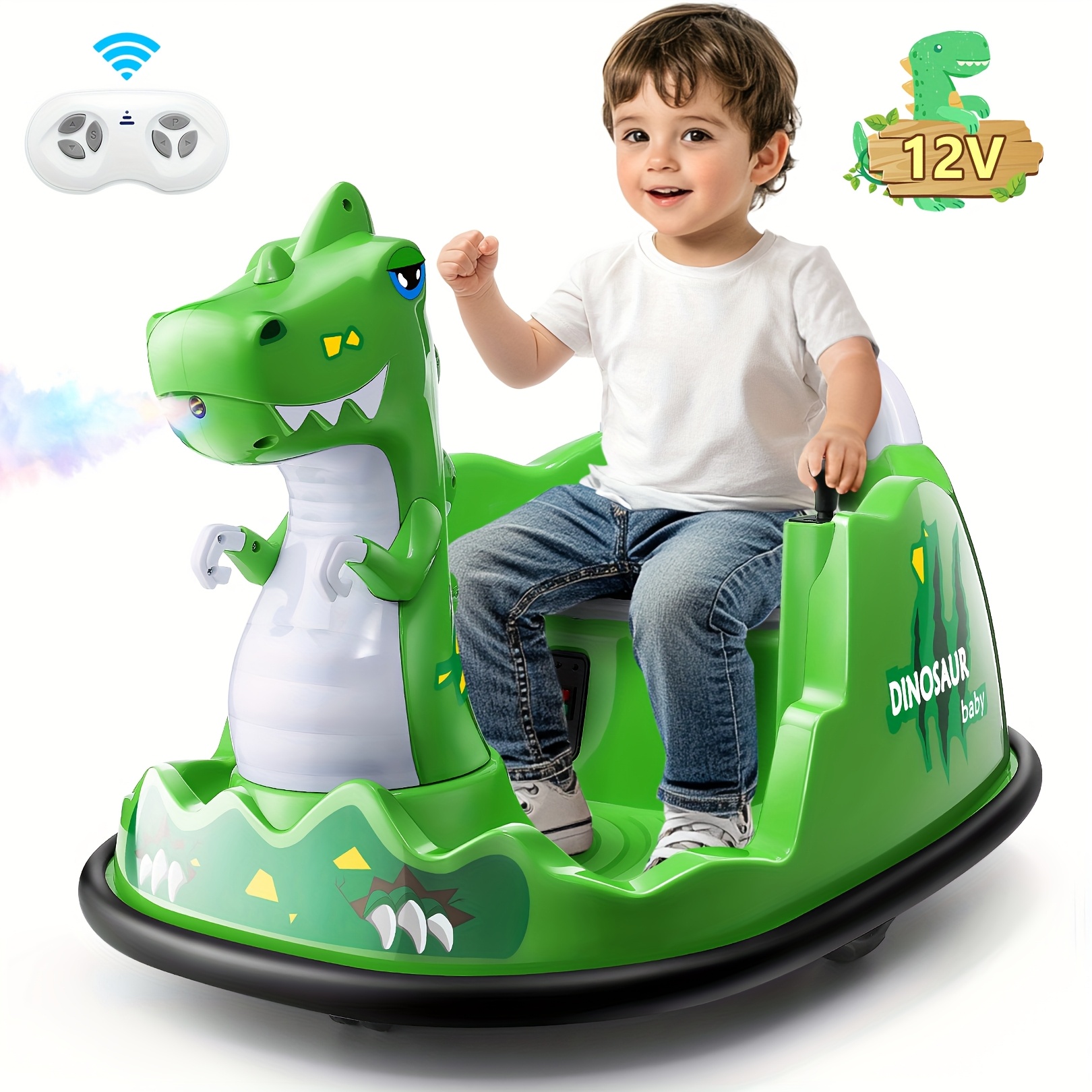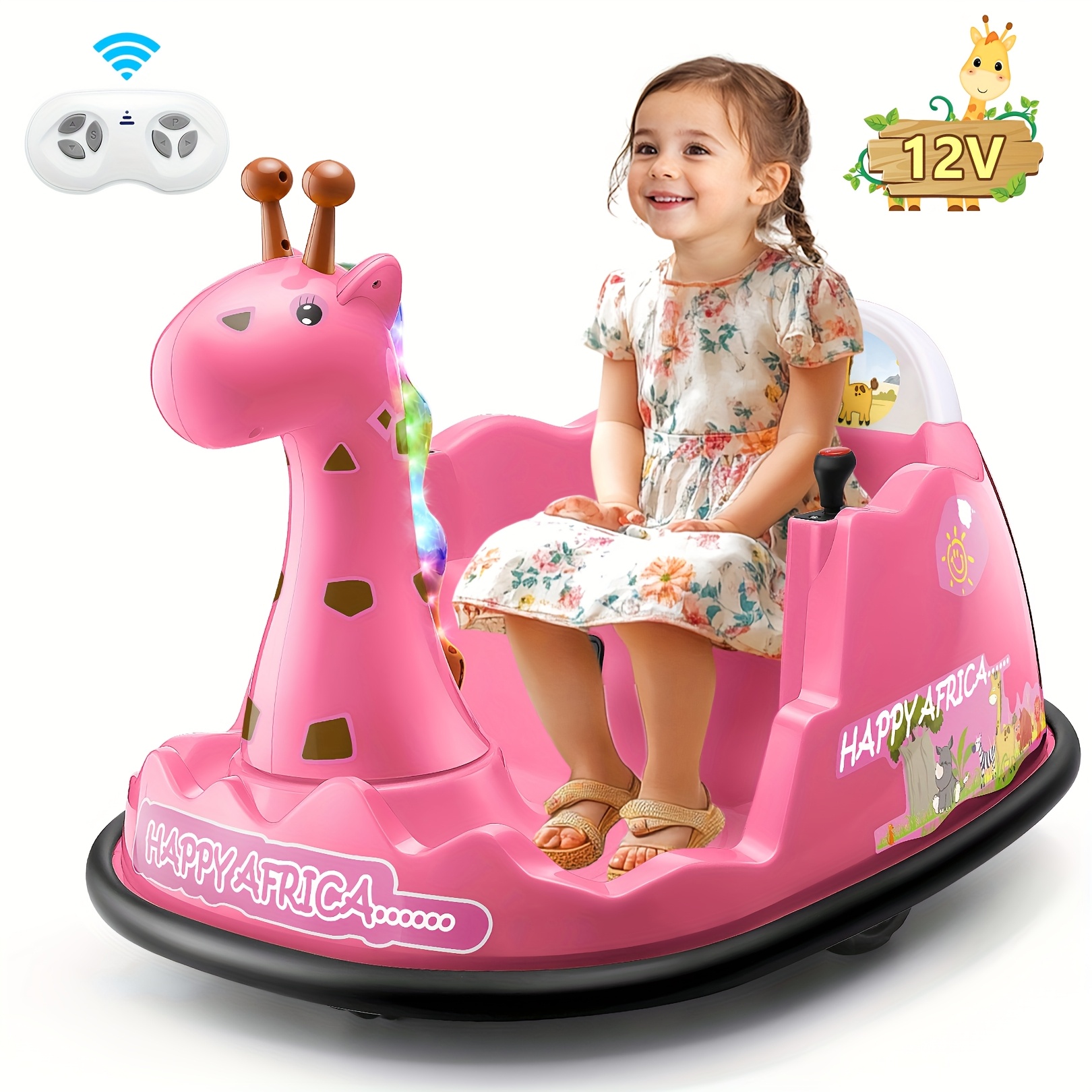 12V Baby Bumper Car For Kids 1.5 - 5 Years, 12V Toddlers Ride On Car With Parent Remote, Music, 360°Degree Spin, 2 Driving Modes, 3 Speed Adjust, Rubber Bumpering Tyre, Giraffe/Dinosaur Toddlers Bumper Car For Kids, Giraffe With Colorful LED Light, Dinosaur With LED Color Mist Spray