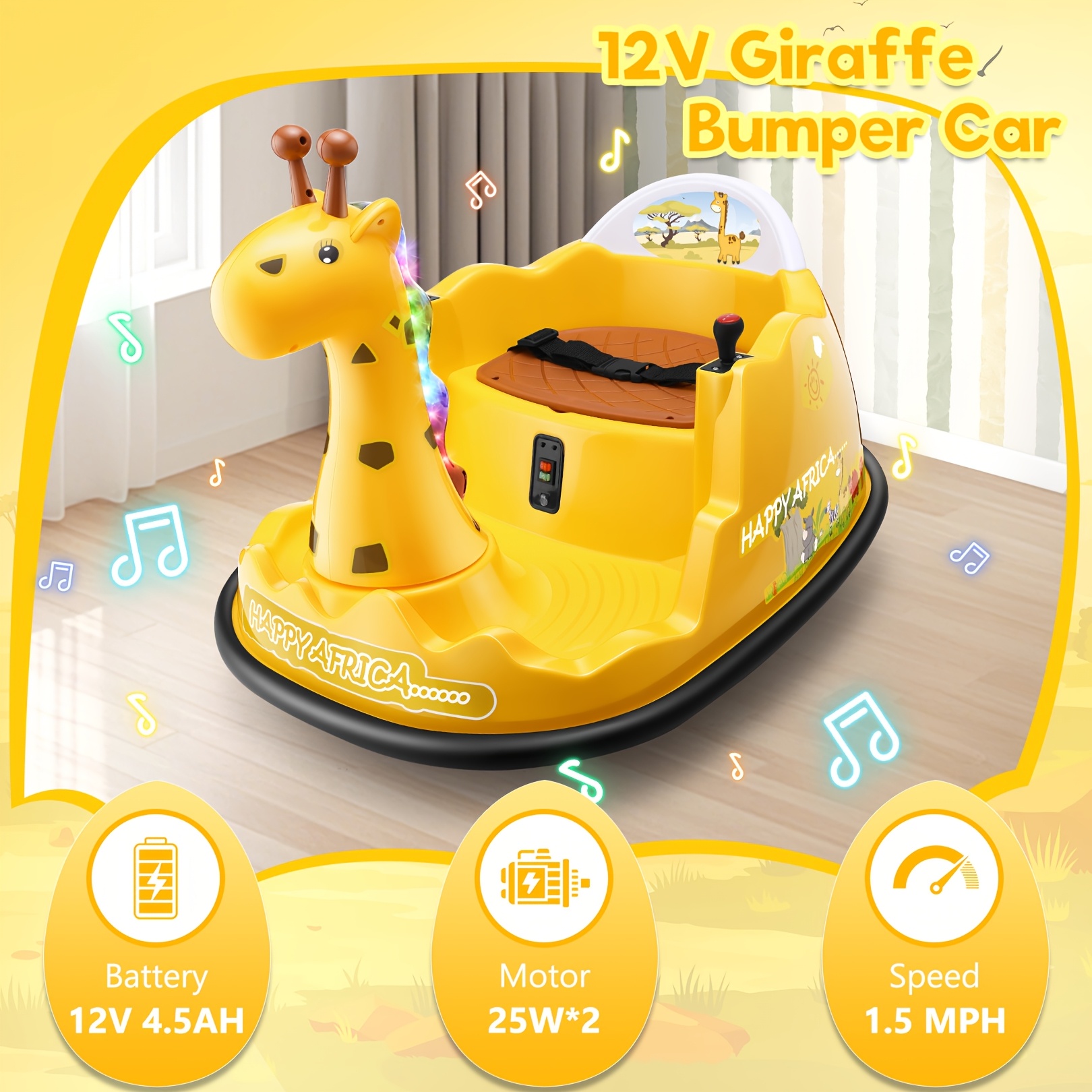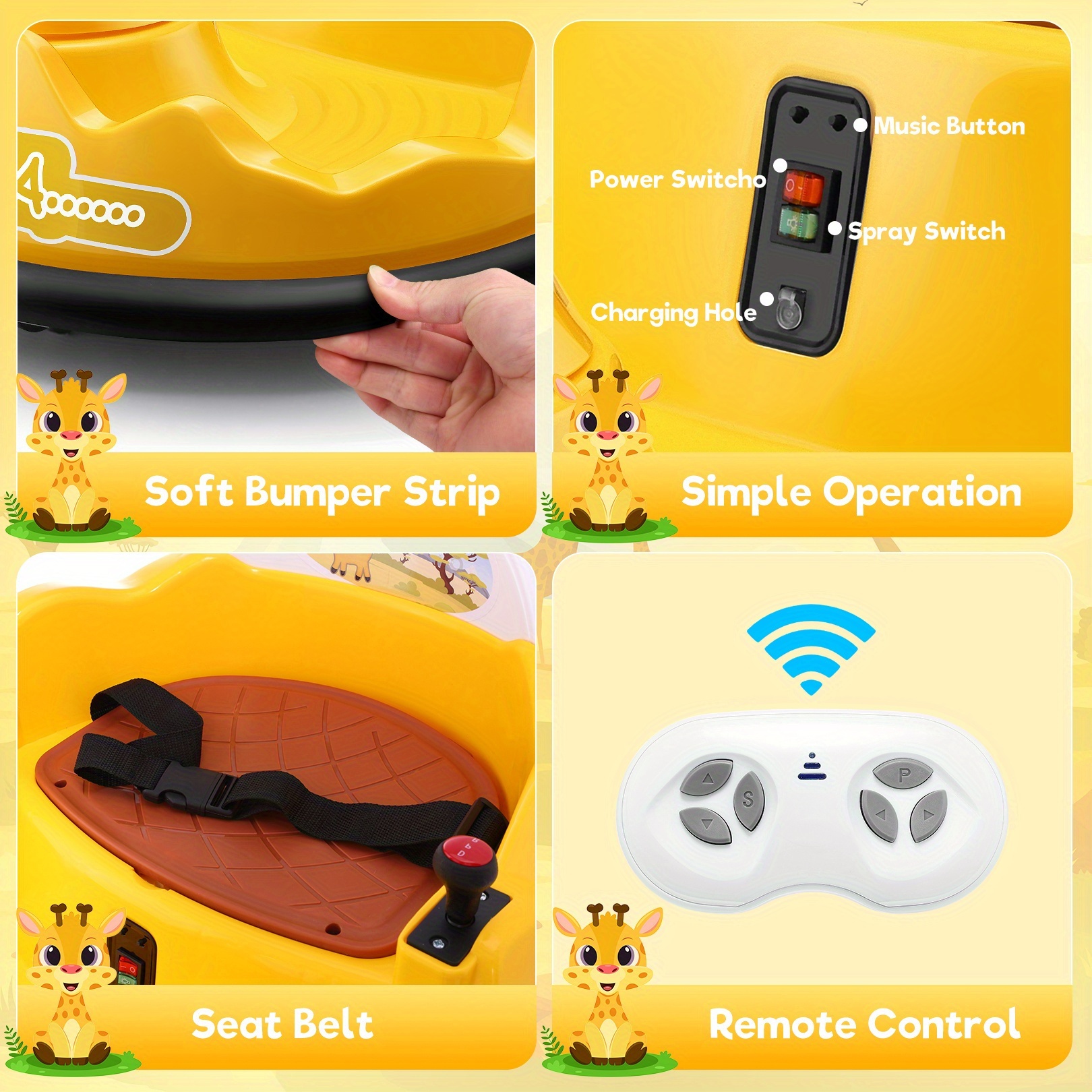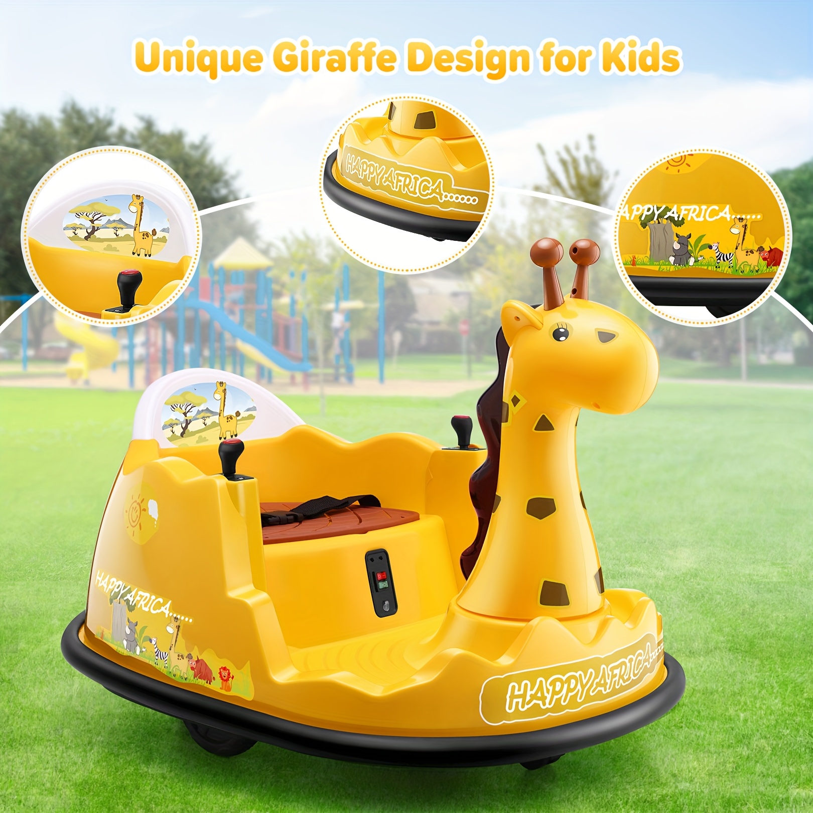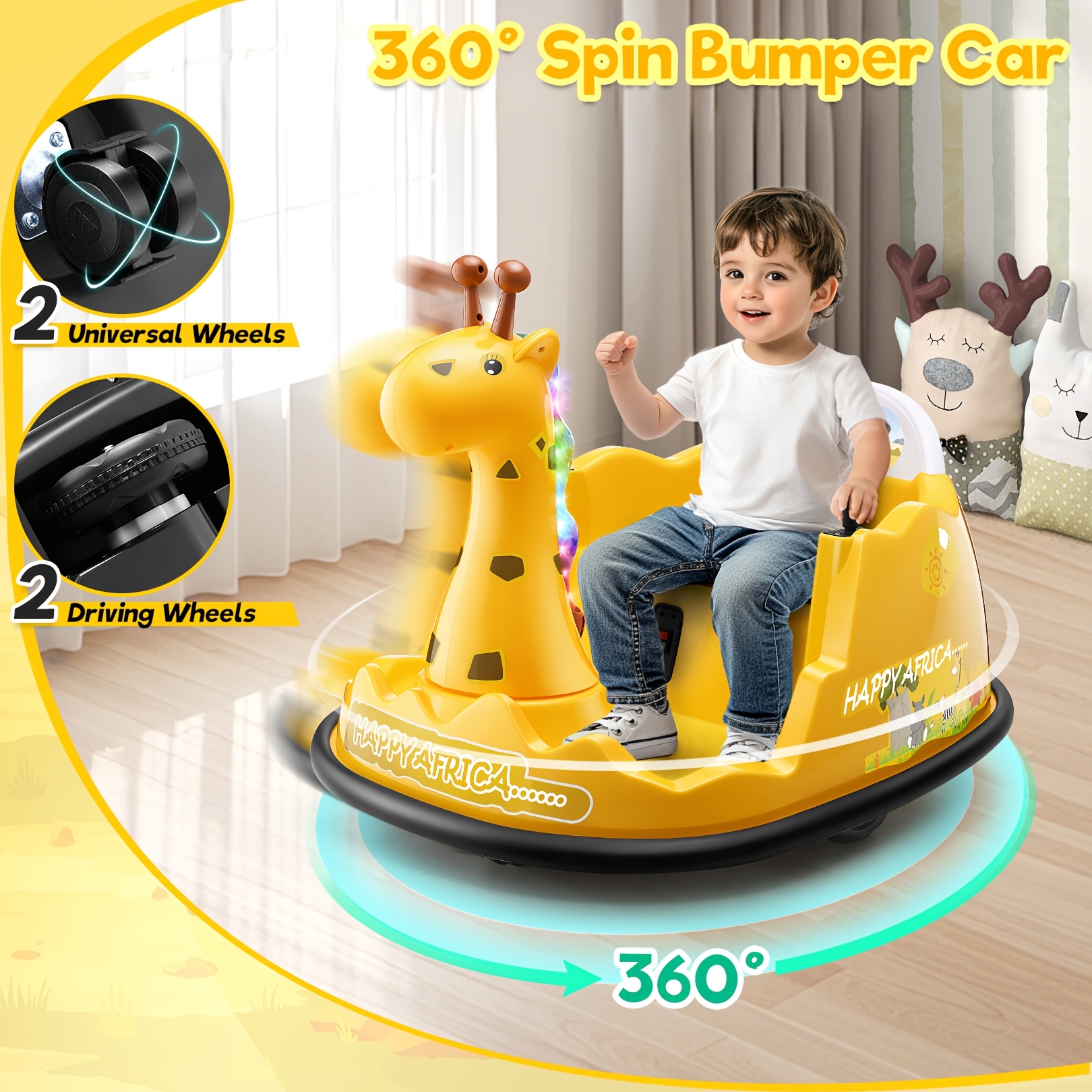 12V Baby Bumper Car For Kids 1.5 - 5 Years, 12V Toddlers Ride On Car With Parent Remote, Music, 360°Degree Spin, 2 Driving Modes, 3 Speed Adjust, Rubber Bumpering Tyre, Giraffe/Dinosaur Toddlers Bumper Car For Kids, Giraffe With Colorful LED Light, Dinosaur With LED Color Mist Spray