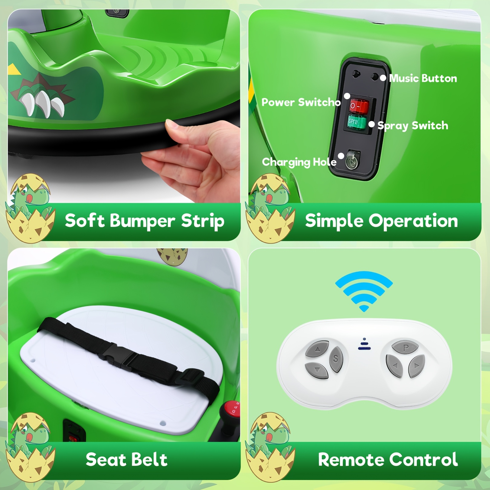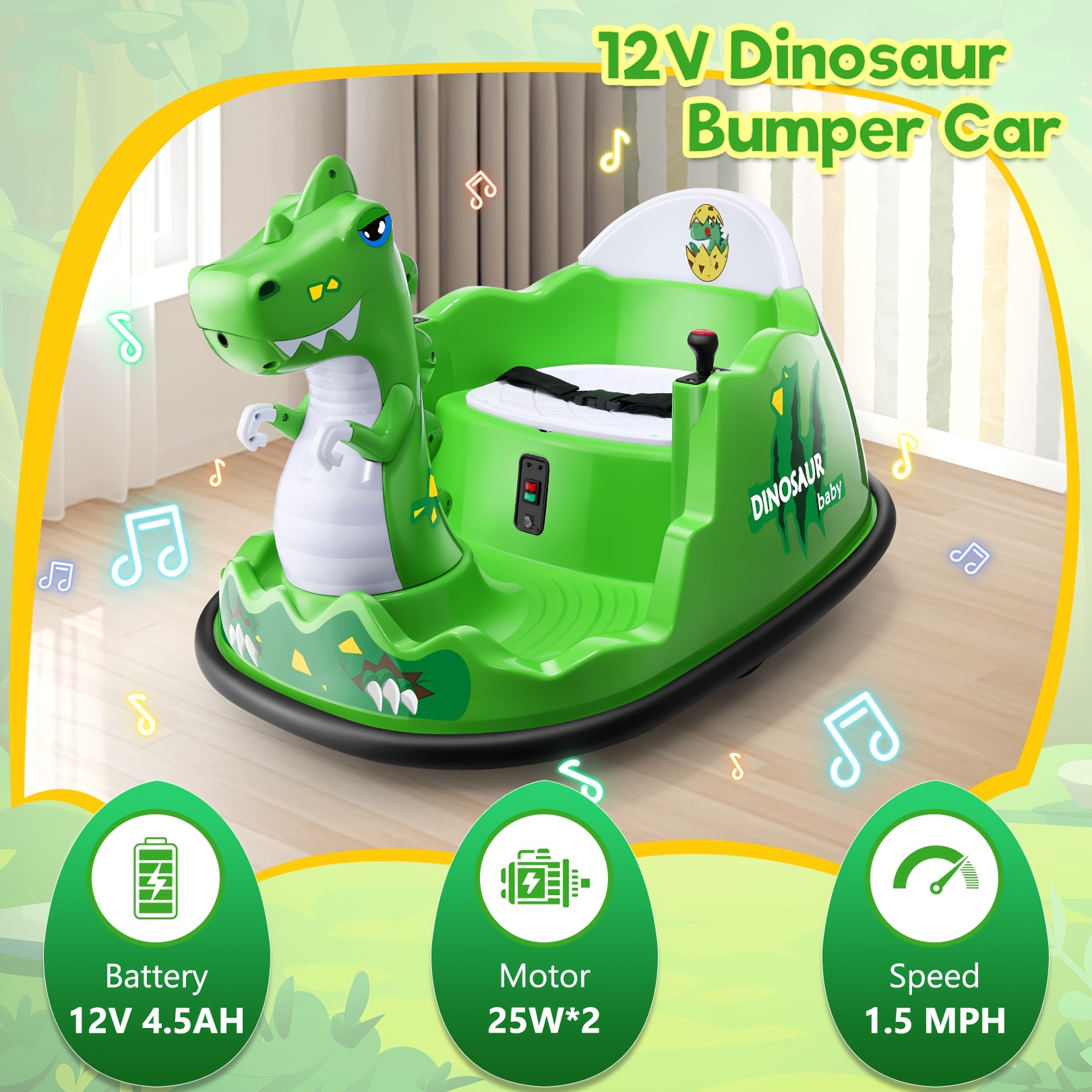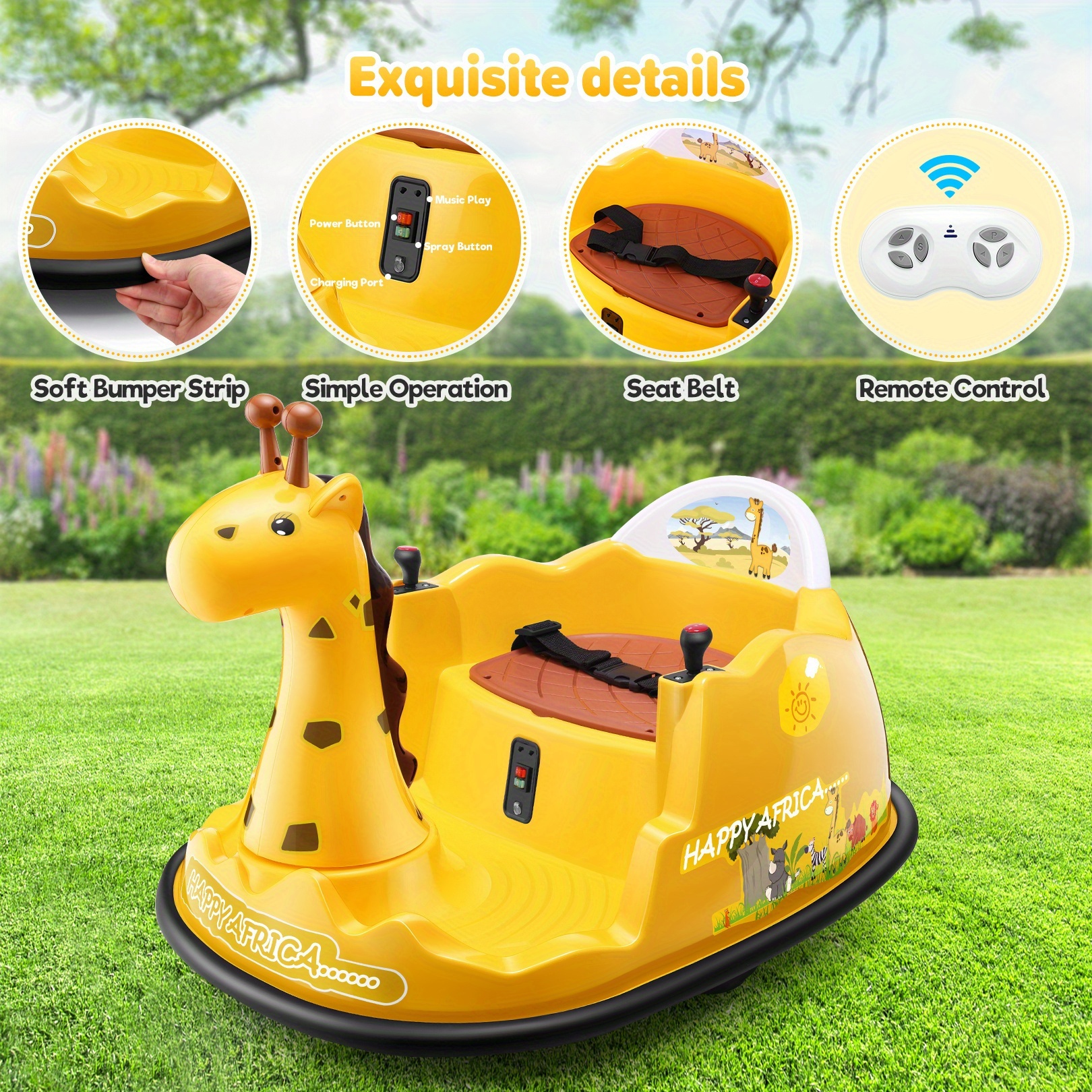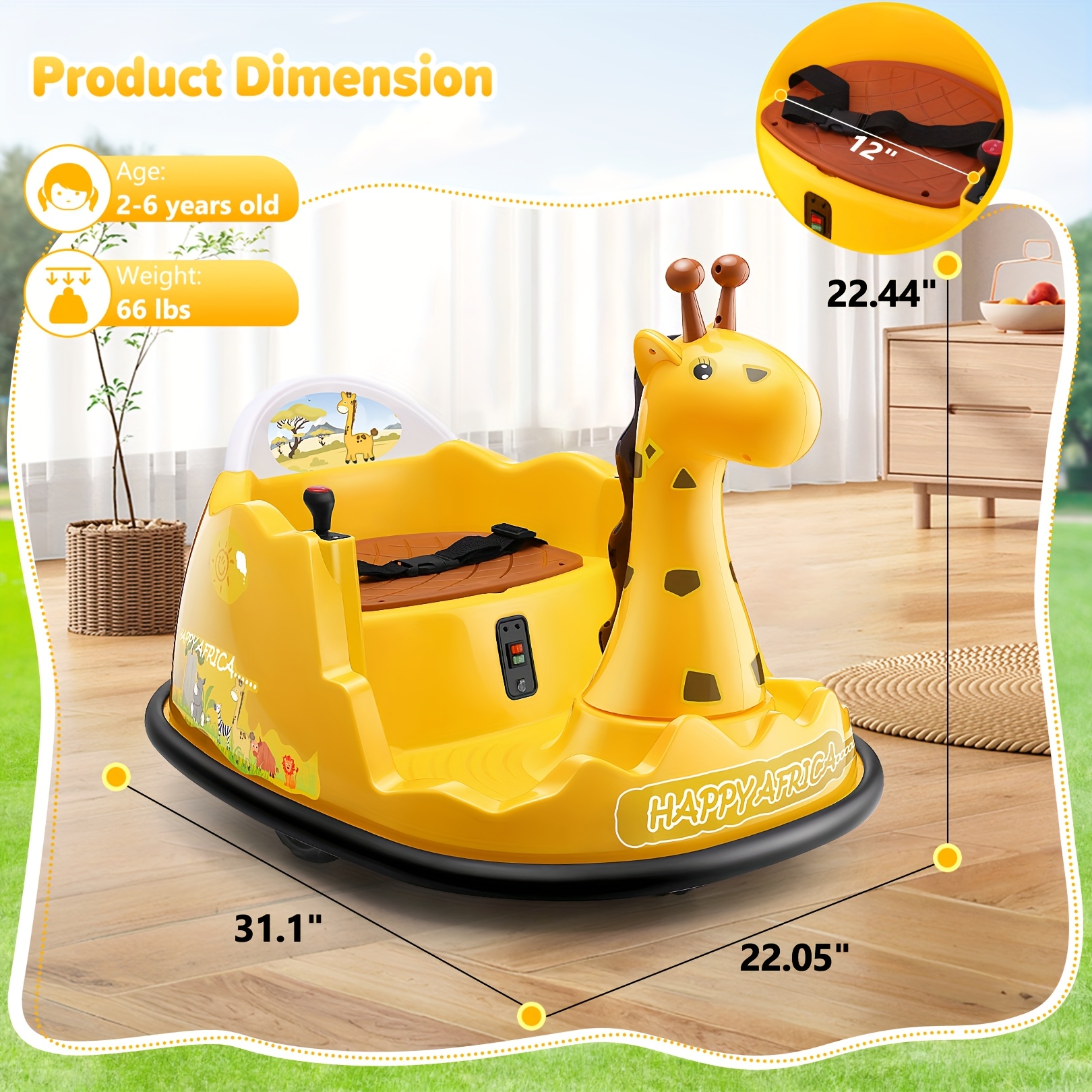 12V Baby Bumper Car For Kids 1.5 - 5 Years, 12V Toddlers Ride On Car With Parent Remote, Music, 360°Degree Spin, 2 Driving Modes, 3 Speed Adjust, Rubber Bumpering Tyre, Giraffe/Dinosaur Toddlers Bumper Car For Kids, Giraffe With Colorful LED Light, Dinosaur With LED Color Mist Spray