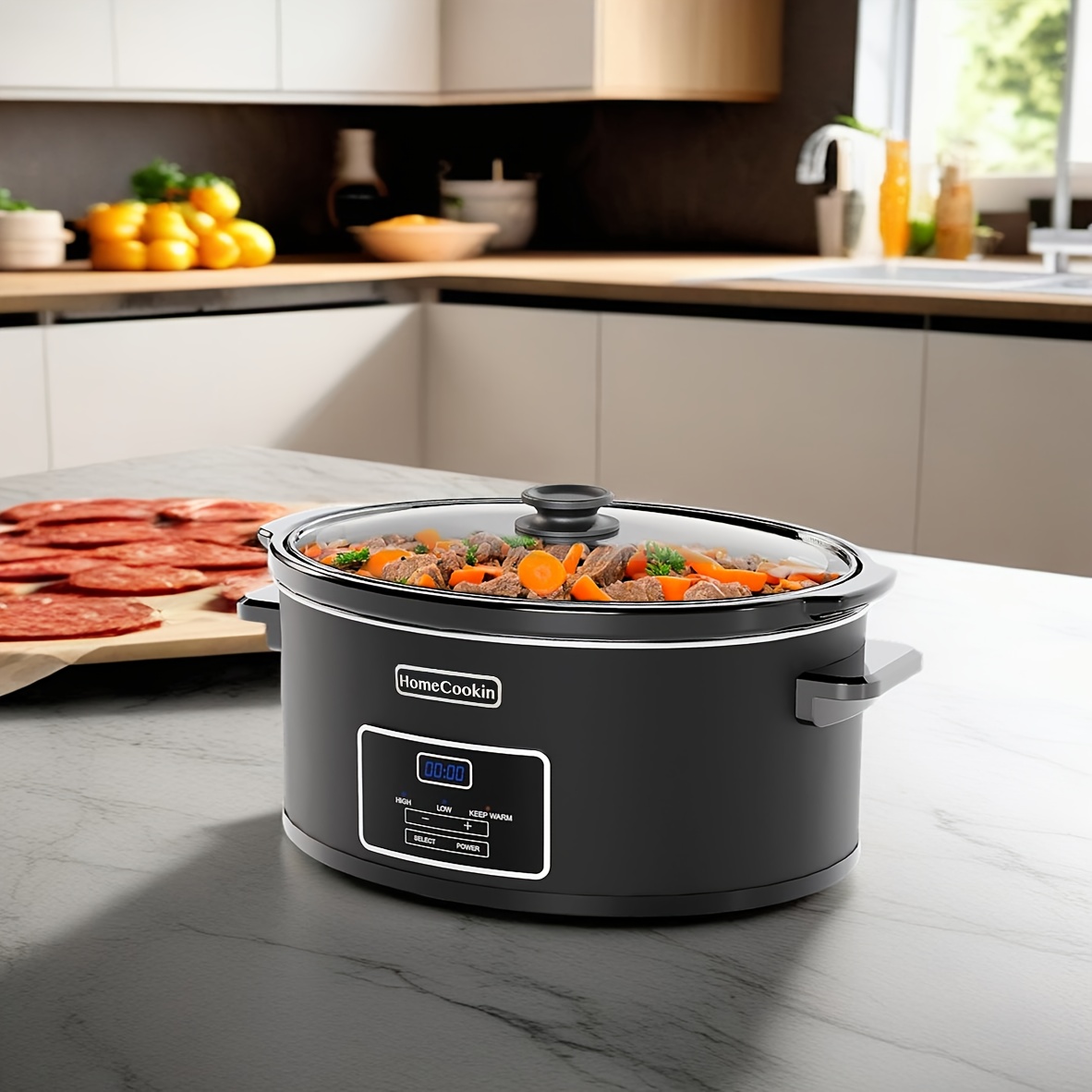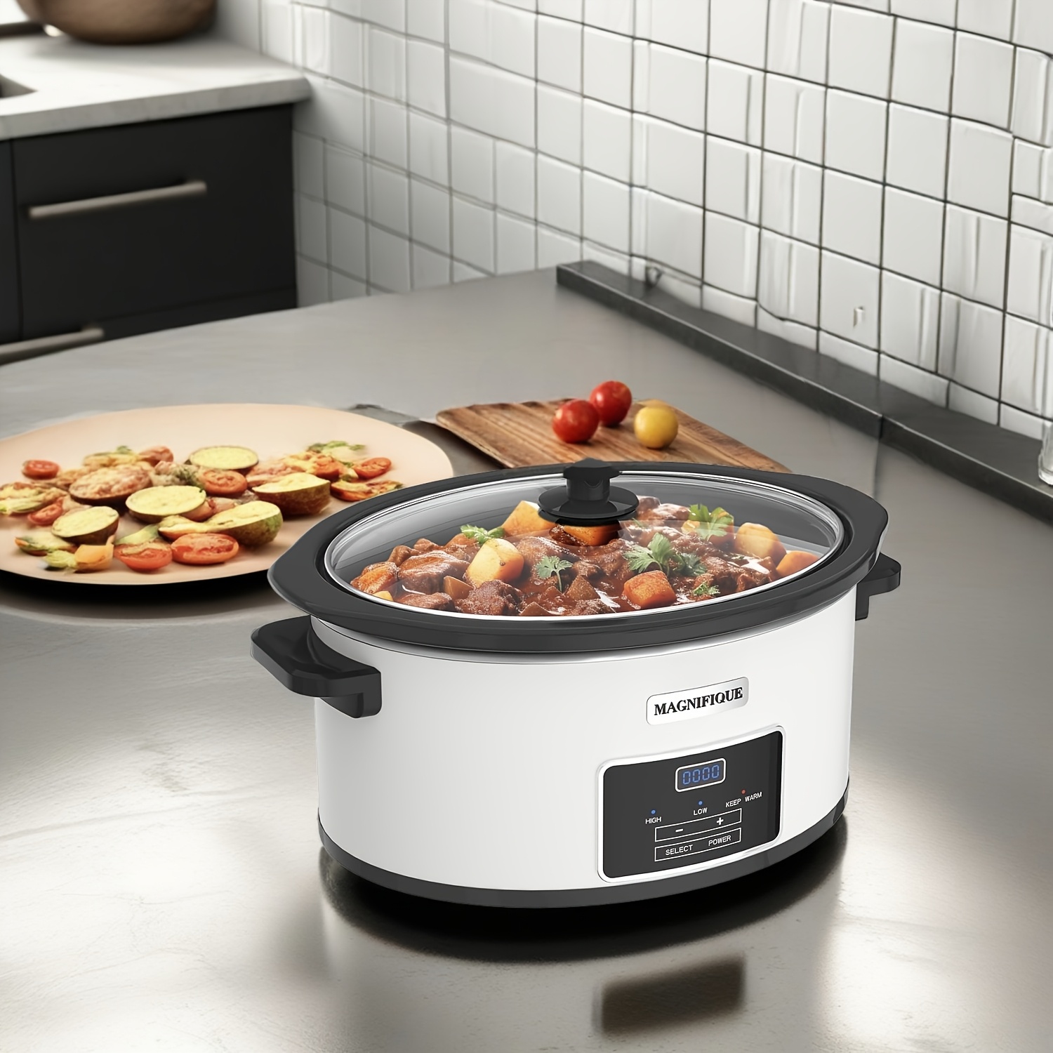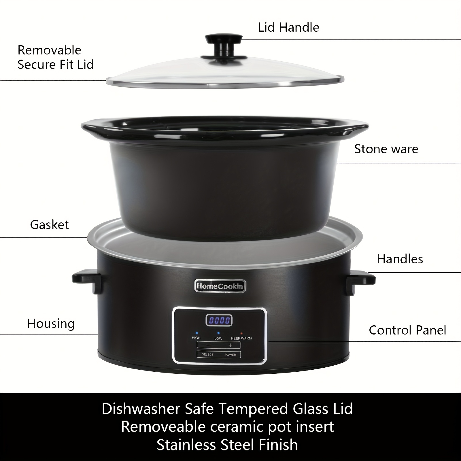 1pc 6-Quart Programmable Slow Cooker with Classic Ceramic Liner, Perfect for Mixing Salads, Making Jam, and Cooking Noodles, Dishwasher Safe Pot, White or Black, Glass/Aluminum/Ceramic Material, 120V, US Plug, Small Household