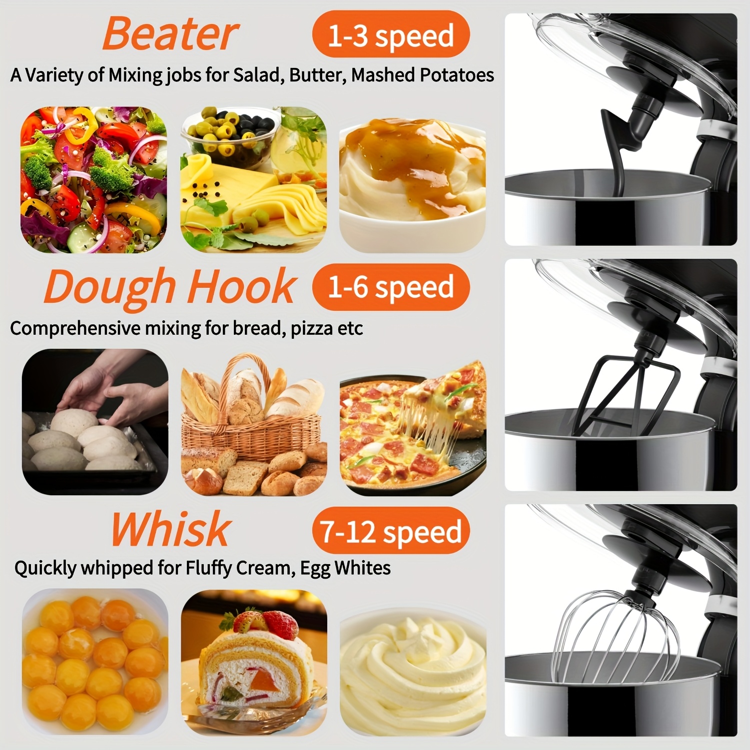 4-in-1 Electric Vertical Mixer, with A Power Of 350 Watts, 12-speed with Pulse Button. Accessories Include 5.5-gallon Stainless Steel Bowl, Mixing Paddle, Dough Hook, Whisk, And A Powerful Baking Mixer Suitable for Cake, Brea