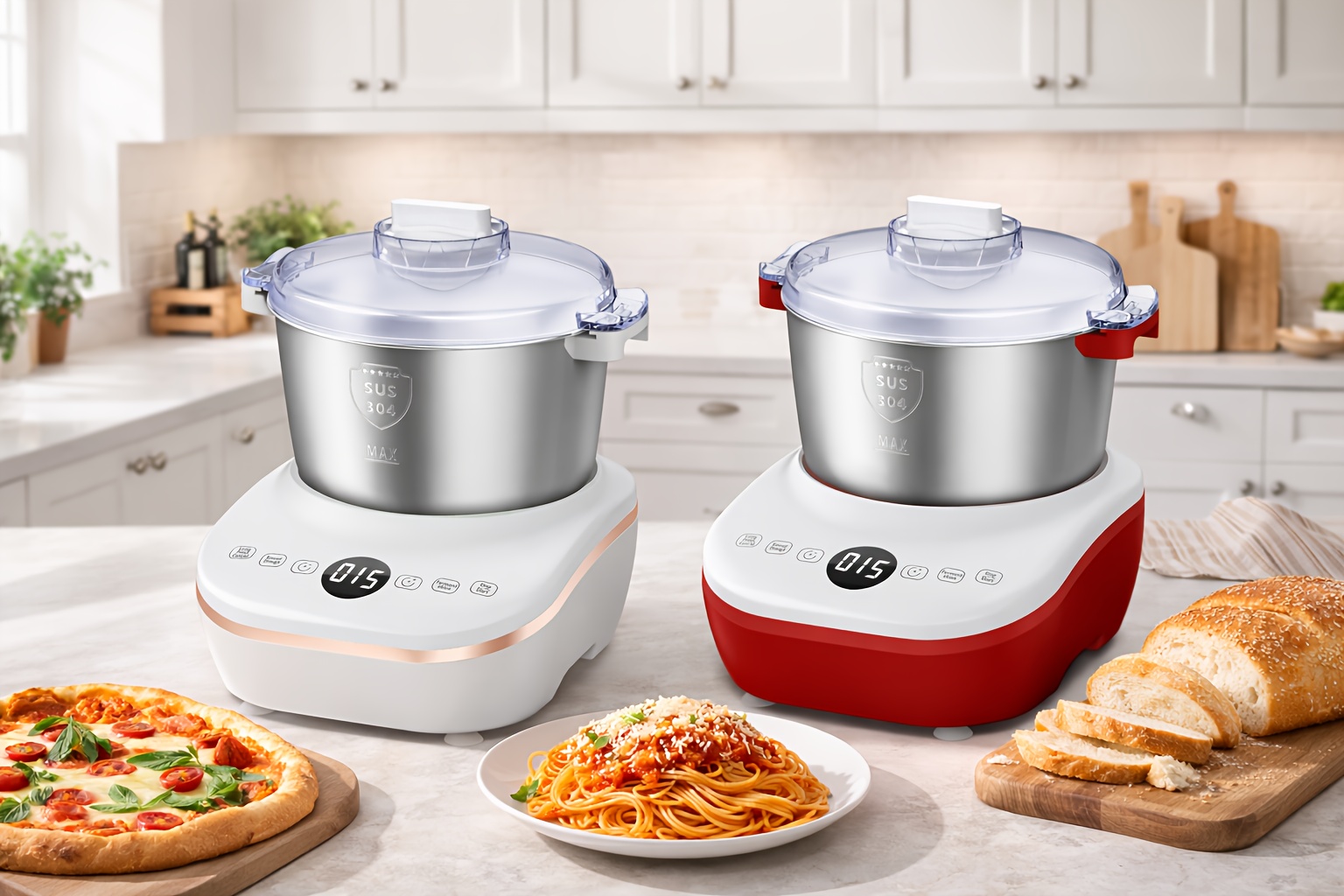 Product Details: Dough mixer machine features a vertical design with a small top window for easy button control and adding ingredients during dough preparation. The base has four silicone suction cups for greater stability and reduced noise during operation.
