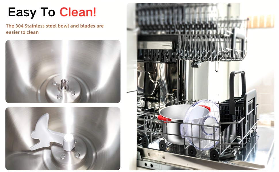 Stainless Steel Material: The mixing bowl and blade are made of durable 304 stainless steel, ensuring longevity and easy cleaning.