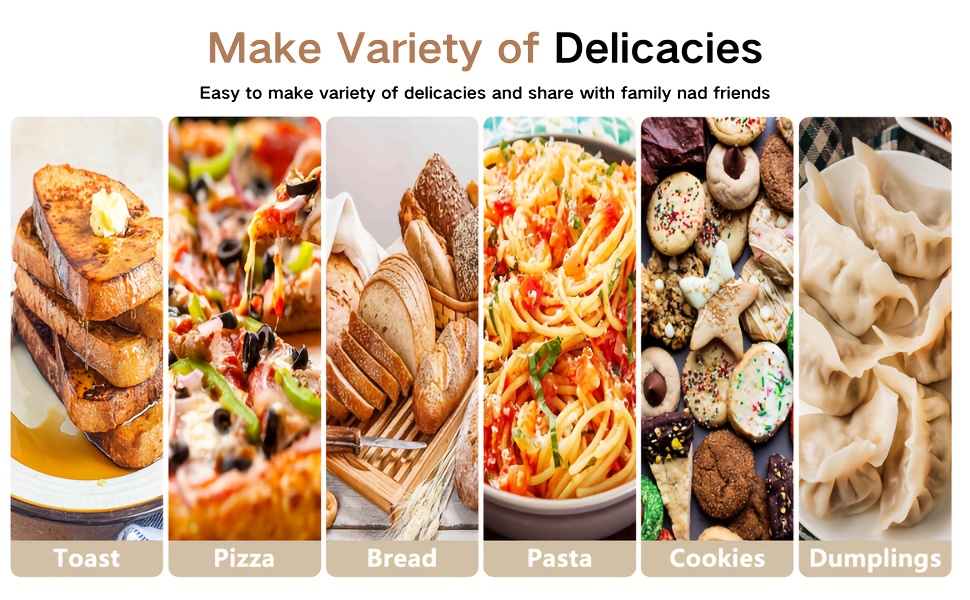 Versatile Dough Options: Electric dough maker mimics the action of hand-kneading with a 250W motor that operates in intervals. Ideal for making dough for bread, pizza, pasta, sourdough, roti, dumplings, and steamed buns. Saves time and effort, simplifying baking and kitchen cooking.