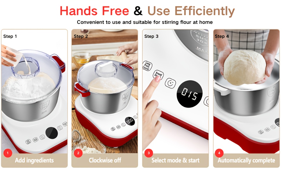 Constant Temperature Fermentation: This dough maker machine features a small heating unit at the base, allowing it to maintain a fermentation range between 77-100℉, helping you create various dough types. Since it doesn’t reach high fermentation temperatures, we recommend using warm water for mixing and fermenting dough during winter.