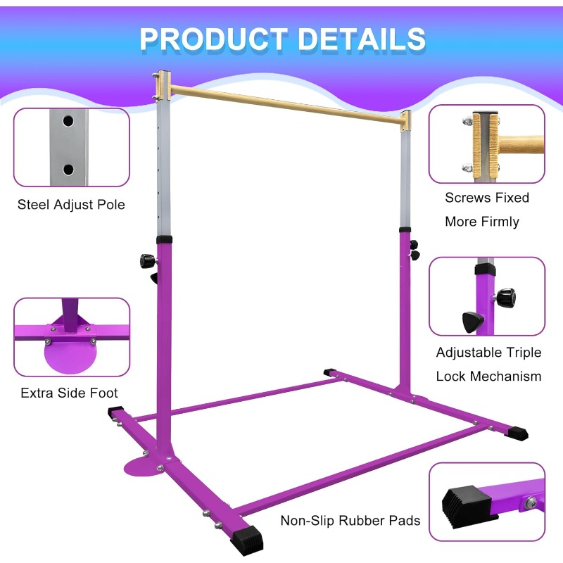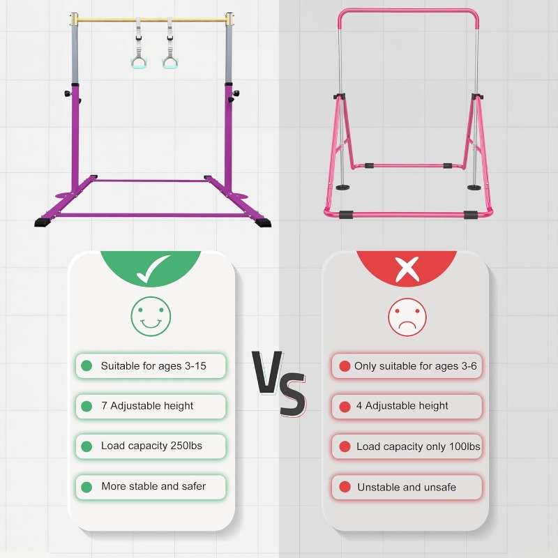 ❤Height Adjustable❤: This gymnastics bar can be set to different heights between 3 and 5 feet, making it ideal for kids and teenagers of all sizes, meeting various training requirements. The easily adjustable feature allows children to keep the right height as they grow, improving both flexibility and usability. ❤Robust Design❤: Constructed from premium steel, it offers reliable and secure support with a weight limit of 250 lbs, ensuring safety and steadiness while in use. Rust-resistant...