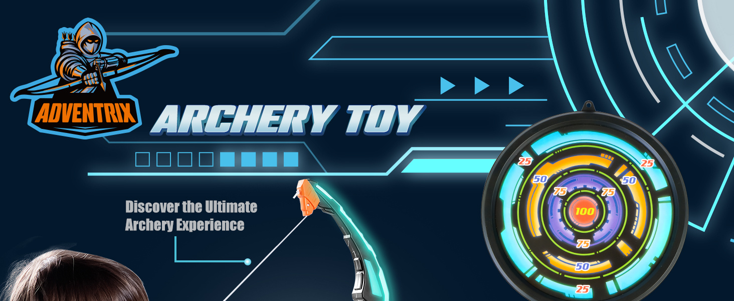 Unleash your child's inner archer with the Syncfun kids bow and arrow set. This all-inclusive archery kit features a bow with electrifying LED lighting, 9 suction cup arrows, a convenient arrow case, a plate target, and 3 foam targets.