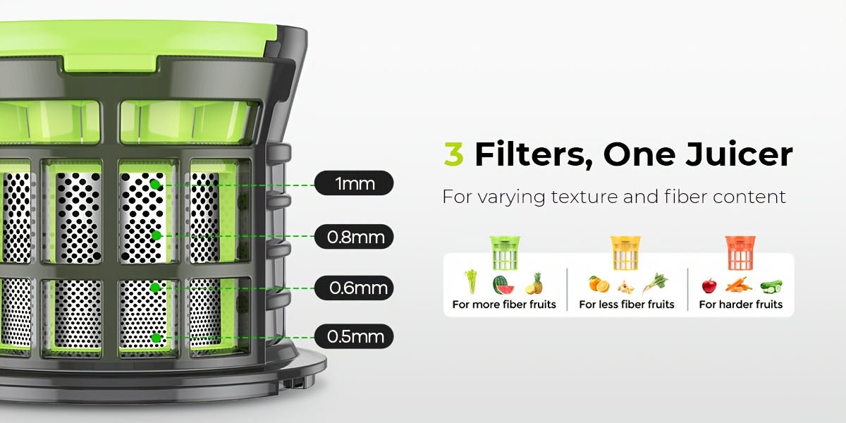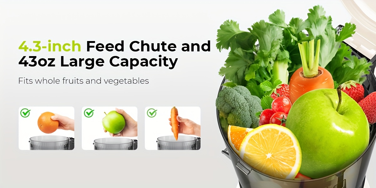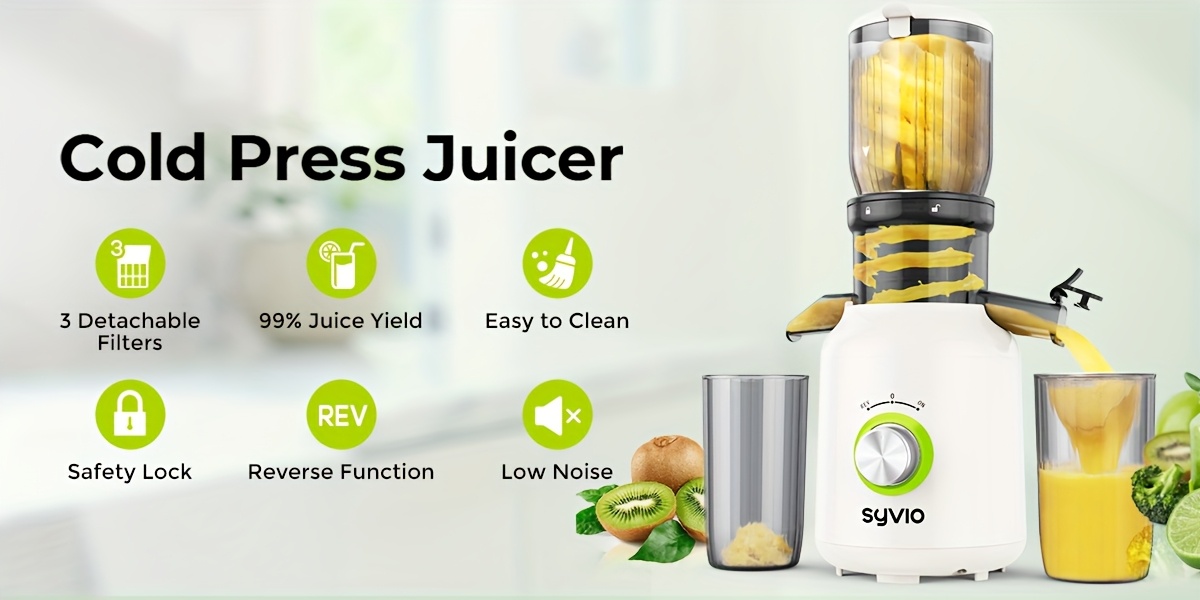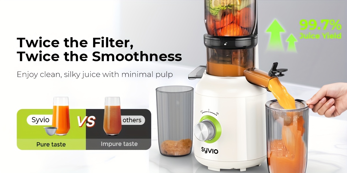 Syvio 3-speed Centrifugal Juicer, Featuring A 4.3-inch Wide Feed Chute For Whole Fruits And Vegetables, Delivers High Juice Yield. Includes 3 Interchangeable Strainers For Batch Juicing And Easy Cleaning.