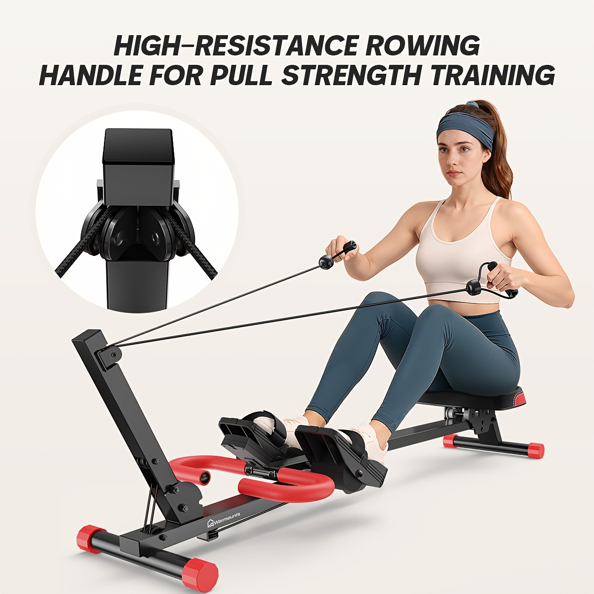 The WARMOUNTS 4-in-1 rowing machine for home workouts cleverly integrates rowing, abdominal exercises, traditional gym workouts, and inverted rowing into a single device. Easily transition between different exercise modes to escape monotonous routines and experience a comprehensive, enjoyable full-body workout at home.